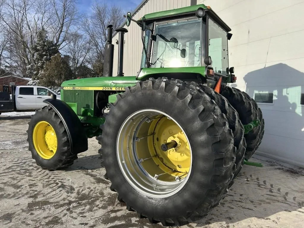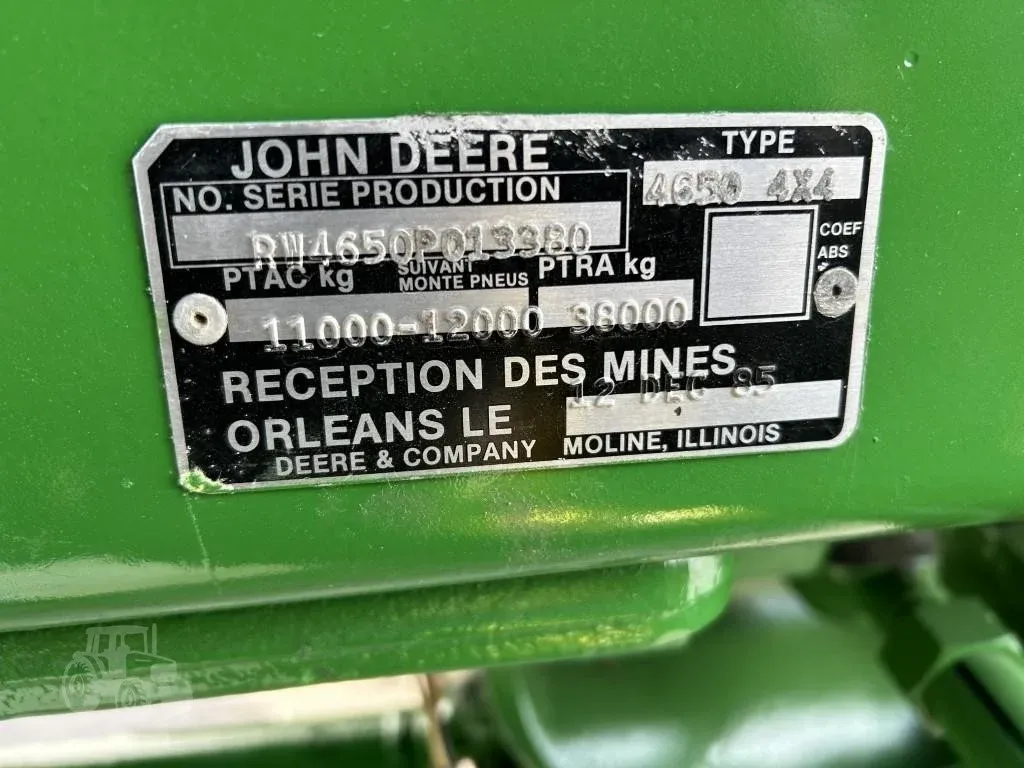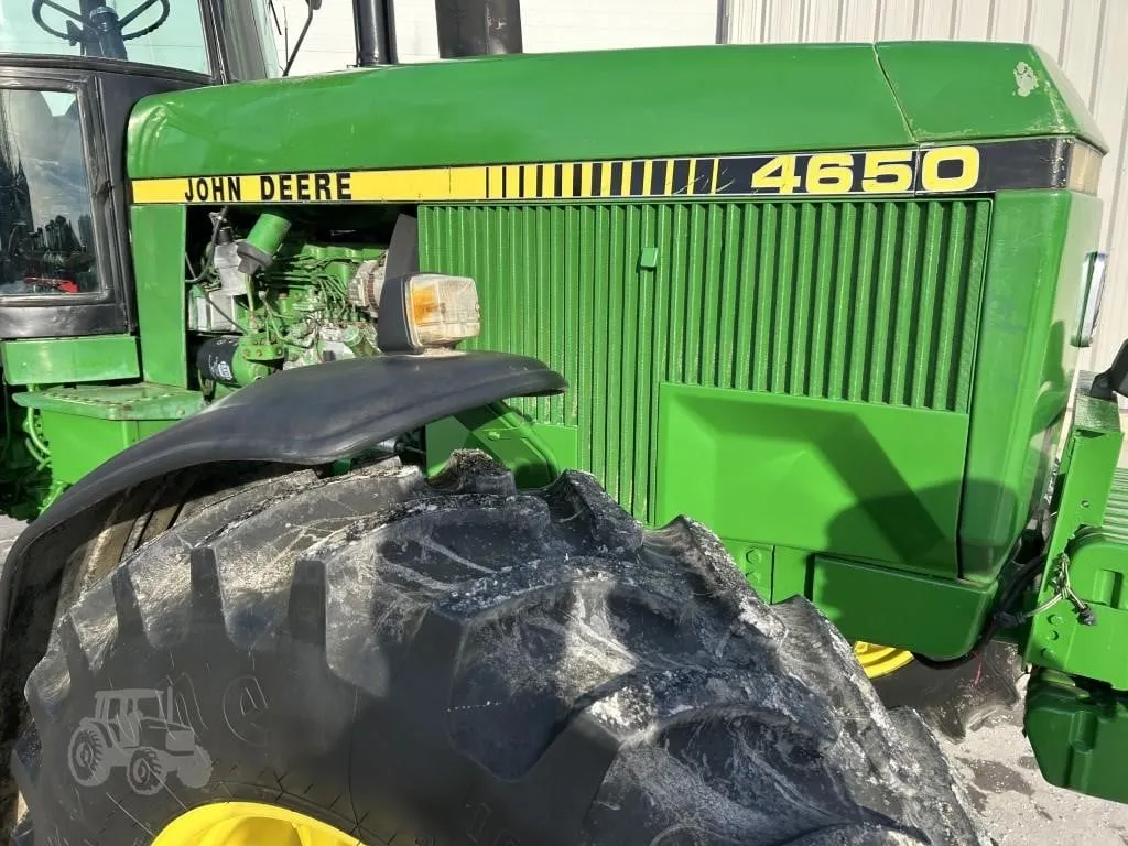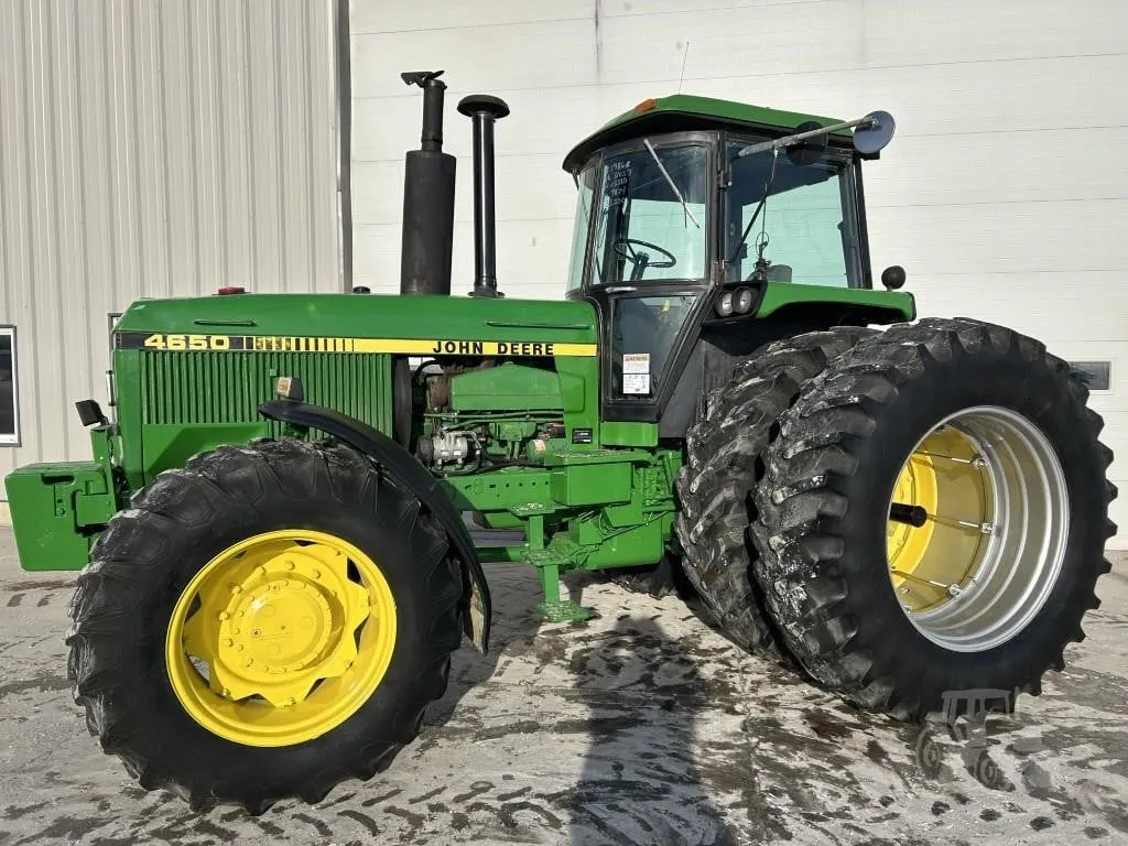 Year: 1986, Make: John Deere, Model: 4650, Hours: 9,874, Fuel Type: Diesel, Drive Type: MFWD, Transmission: Powershift, Engine Power: 187 HP