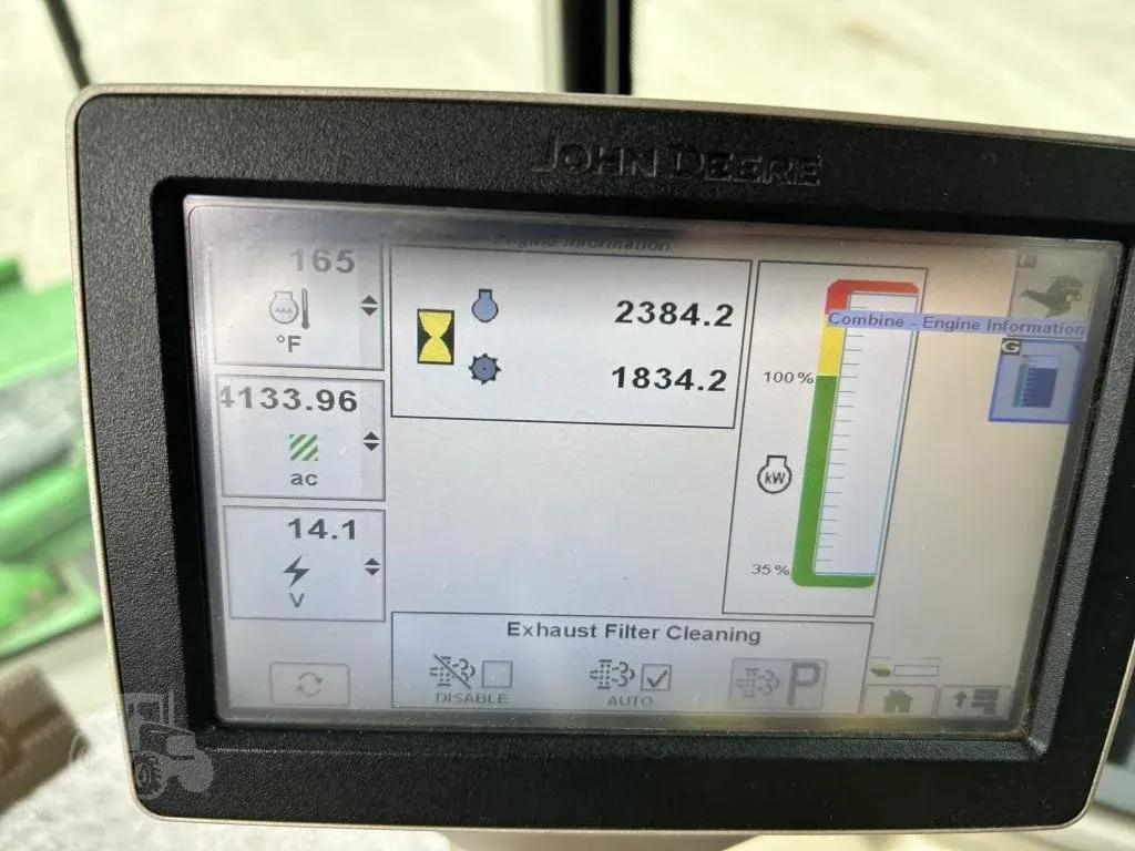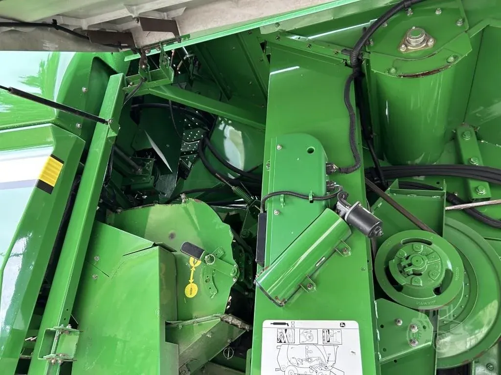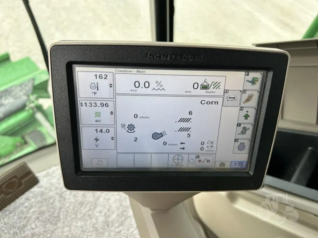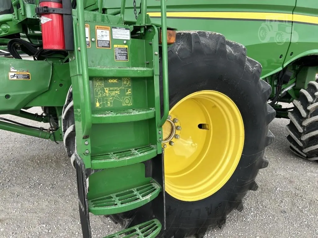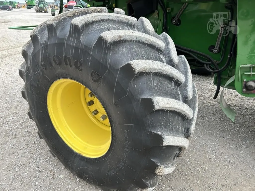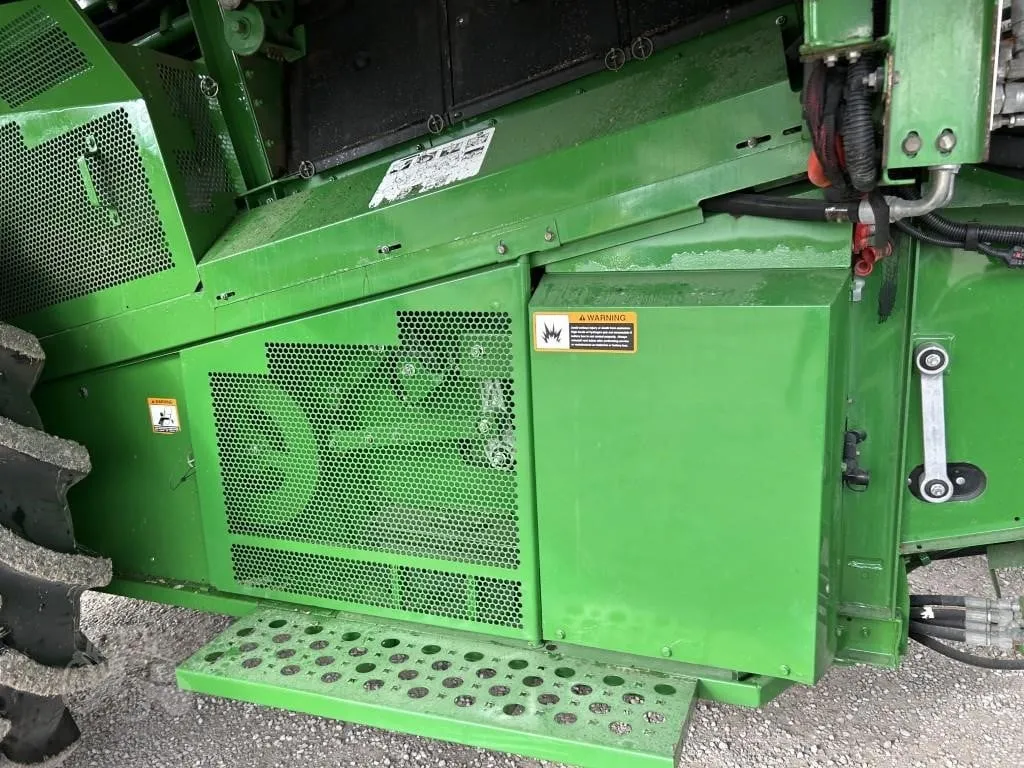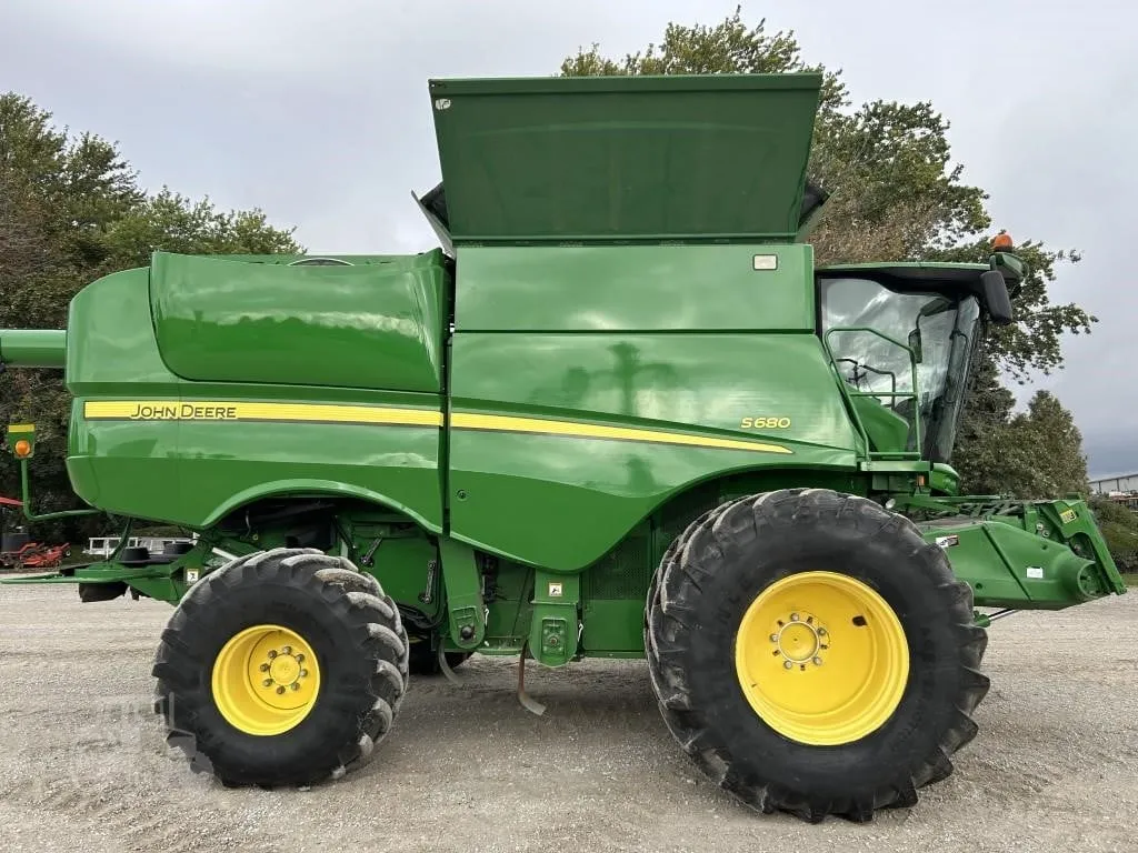 This 2014 John Deere S680 combine is a very nice, well-equipped machine with 1,834 engine hours and 2,382 separator hours. It features 4WD and is equipped with a ProDrive transmission with HarvestSmart, delivering smooth operation, excellent traction, and automatic ground speed control for maximum harvesting efficiency. The combine is fitted with Firestone rubber, including 650/85R38 duals and 750/65R26 rear tires, providing stability and flotation in varying field conditions. Harvest performance is enhanced with a PowerFold bin extension, PowerCast tailboard, 5-speed feederhouse, Contour Master header control, chopper, and an extended-wear Tri-Stream rotor. The high-capacity unloading auger allows for fast and efficient grain unloading, while TouchSet sieves and single-point hookups make setup and adjustments quick and convenient. This unit is AutoTrac ready and comes equipped with GreenStar yield and moisture monitoring for precision farming operations. Operator comfort and visibility are top-notch with the premium cab, buddy seat, cab mirrors, safety lights, beacon lights, HID lighting package, 7-inch display, and premium XM satellite radio. This is a clean, field-ready combine offering high capacity, advanced technology, and operator comfort. Financing and trucking are available—please call ahead to confirm availability before visiting.