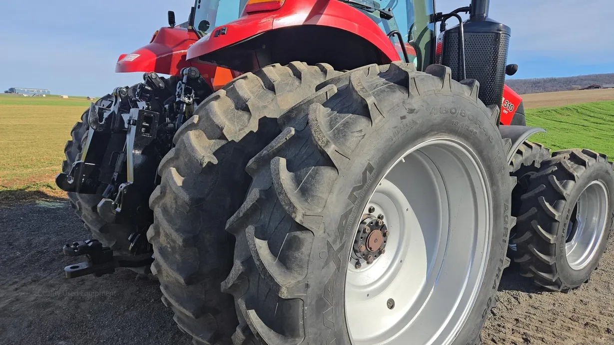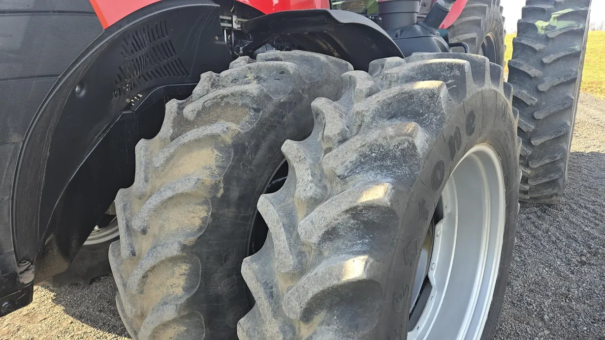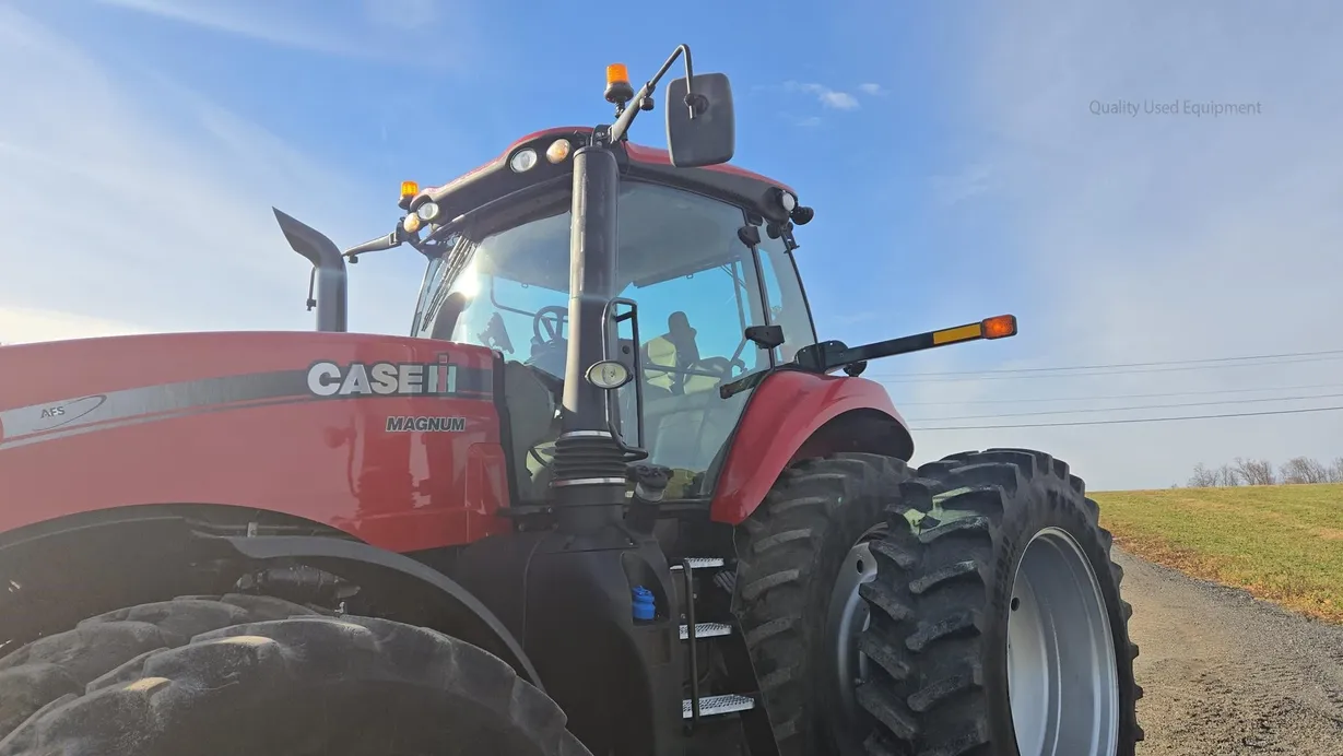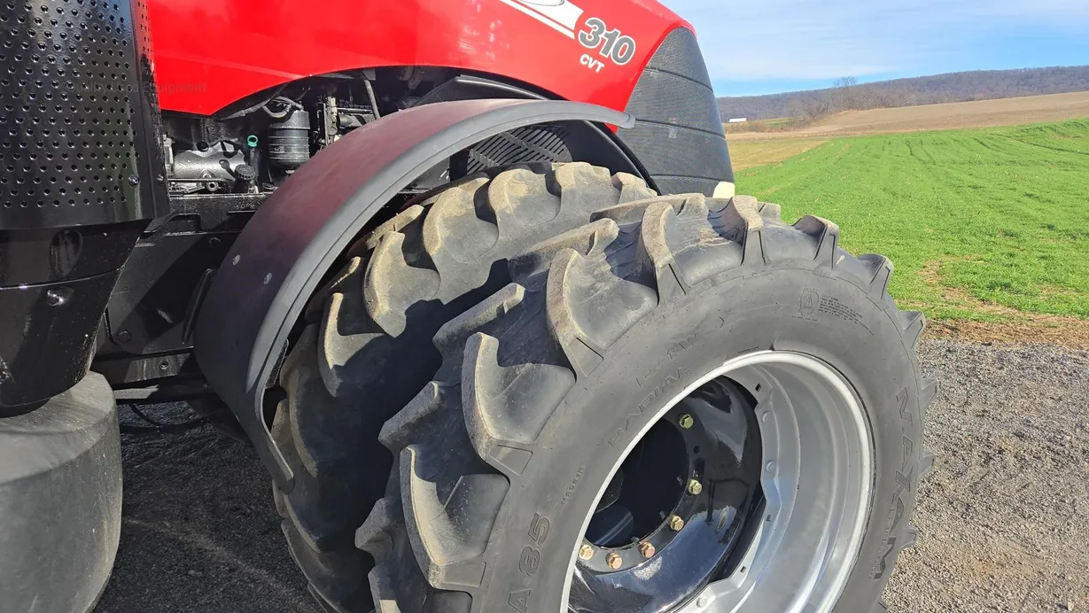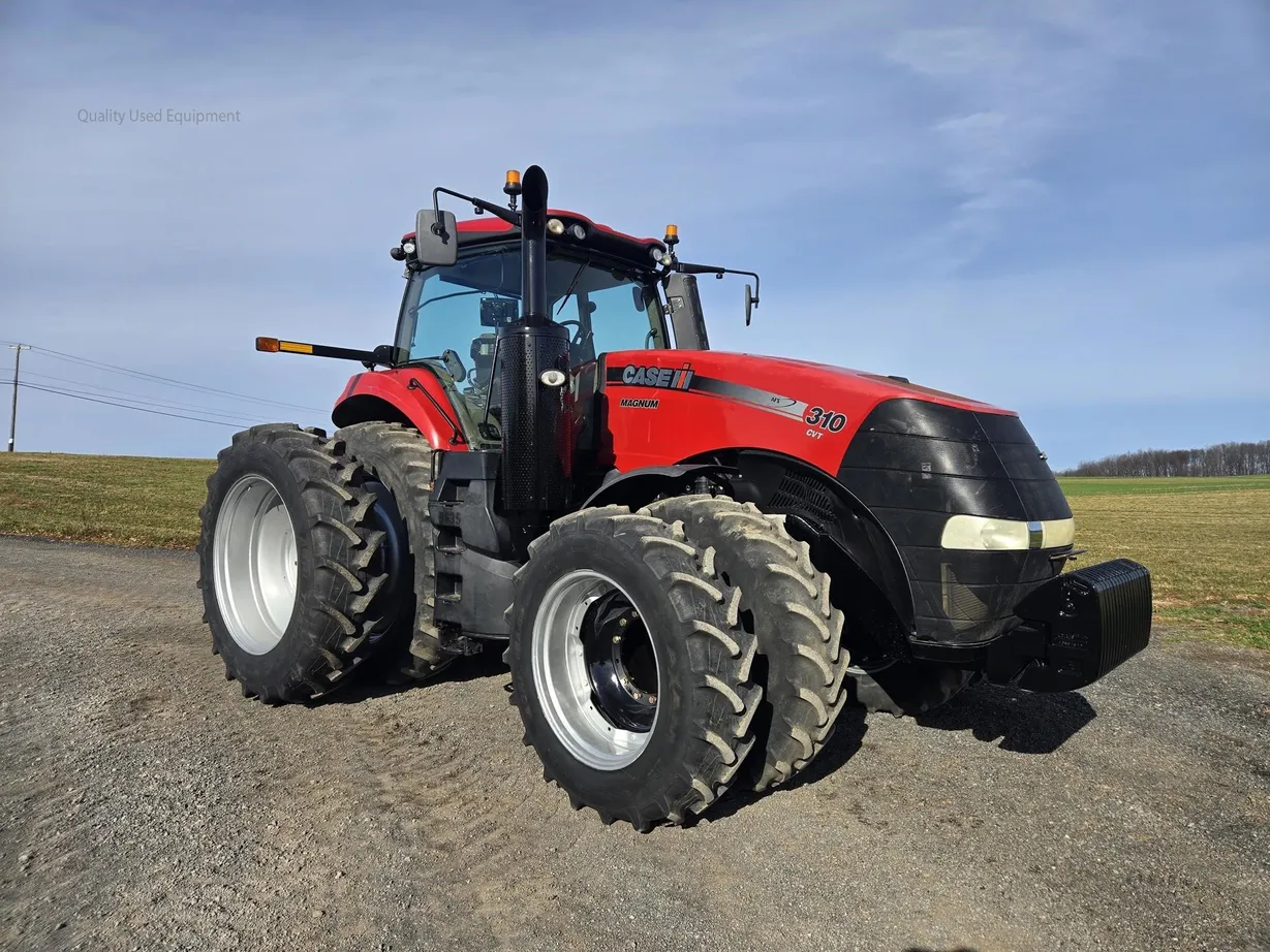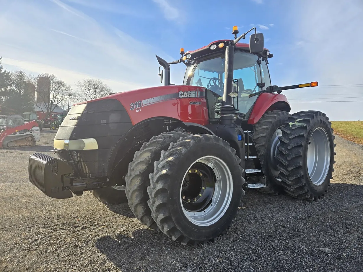 This 2018 Case IH Magnum 310 CVT tractor has 4,125 hours and is a field-ready, high-performance machine built for large-scale farming and heavy field work. It features a fully enclosed cab with heat, air conditioning, cab suspension, and a comfortable operator seat, providing excellent comfort during long working days. The tractor is equipped with dual front and rear tires (380/85R34 front and 480/80R46 rear) with good tread remaining, along with front weights (18 total) for optimal balance and traction. Powering this Magnum 310 is a robust diesel engine dyno-tested at 340 rated horsepower, paired with a smooth and efficient CVT transmission for seamless speed adjustment and consistent power delivery under load. The tractor comes with a rear PTO, rear three-point hitch, and six rear hydraulic remotes, making it highly versatile for a wide range of implements and attachments. Additional features include fully functional lights, radio, monitor, front fenders, and ROPS safety. With excellent hydraulics, durable tires, and a strong, reliable drivetrain, this Magnum 310 CVT is a dependable choice for demanding operations. Financing and trucking assistance are available—please call ahead to confirm availability before visiting.